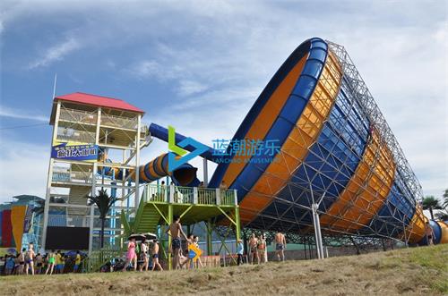 大喇叭滑梯1次滑行共坐4人的四葉草型浮圈,從六層多樓高的平臺(tái)出發(fā),像被龍卷風(fēng)滑倒一摔吸進(jìn)一個(gè)巨大的喇叭當(dāng)中,在快速滑行中大家盡情歡叫,大喇叭會(huì)讓你的聲音傳向整個(gè)園區(qū)。沖上一側(cè)滑道的對(duì)面圍擋。越過(guò)中心線。近乎垂直地保持在墻上,體驗(yàn)瞬間失重的感覺(jué)。正當(dāng)游客認(rèn)為他們即將傾覆時(shí),重力又將他們拉回到底部,然后沖上另一面墻。擺動(dòng)會(huì)一直持續(xù),直到浮筏被推入黑暗的出口滑道,到達(dá)下面的落水池。在急速滑行中體檢失重和離心力,這樣的滑行之美特別適合喜歡體驗(yàn)新奇刺激的游客游玩。大喇叭滑道是風(fēng)靡全球的水上滑道,多年來(lái)仍是全球水上公園里最富盛名的招牌水上娛樂(lè)項(xiàng)目。