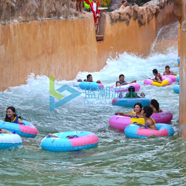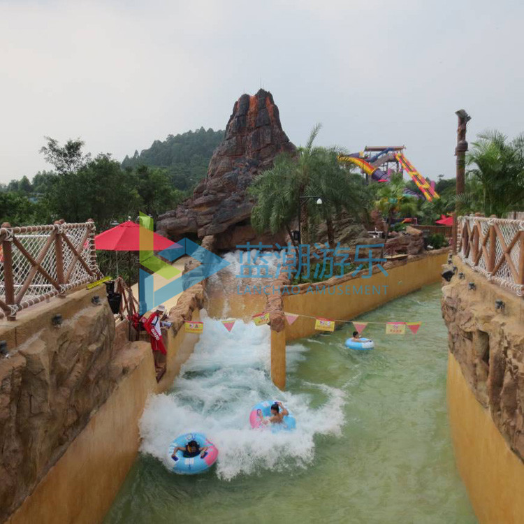 总长度300米的巨洪峡漂流河,游客可躺在特别设计的泳圈上沿河漂流,除有常规的水流加速设备外,丛林漂流还增加了人工造浪系统,故水流亦时急时缓。急处惊涛骇浪,波峰流转,势不可挡;缓处微澜不惊,河面如镜。两岸造型丰富奇特,花香四溢,身处其中,一边自由自在地欣赏溪河美景、丛林险奇,一边在流水戏舟中享受畅游之趣,流连于碧水绿荫之间,真可谓妙不可言。