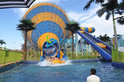 大喇叭滑梯1次滑行共坐4人的四葉草型浮圈,從六層多樓高的平臺(tái)出發(fā),像被龍卷風(fēng)滑倒一摔吸進(jìn)一個(gè)巨大的喇叭當(dāng)中,在快速滑行中大家盡情歡叫,大喇叭會(huì)讓你的聲音傳向整個(gè)園區(qū)。沖上一側(cè)滑道的對(duì)面圍擋。越過(guò)中心線。近乎垂直地保持在墻上,體驗(yàn)瞬間失重的感覺(jué)。正當(dāng)游客認(rèn)為他們即將傾覆時(shí),重力又將他們拉回到底部,然后沖上另一面墻。擺動(dòng)會(huì)一直持續(xù),直到浮筏被推入黑暗的出口滑道,到達(dá)下面的落水池。在急速滑行中體檢失重和離心力,這樣的滑行之美特別適合喜歡體驗(yàn)新奇刺激的游客游玩。大喇叭滑道是風(fēng)靡全球的水上滑道,多年來(lái)仍是全球水上公園里最富盛名的招牌水上娛樂(lè)項(xiàng)目。